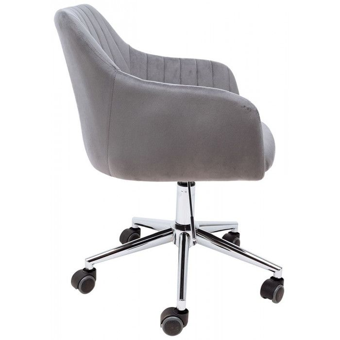Спинка и сиденье выполнены из износостойкого и плотного велюра. Ткань устойчива к разрывам и истиранием, а также неприхотлива в уходе и не вызывает аллергических реакций. Подлокотники облегчат процесс посадки и вставания, а также позволят снять нагрузку с рук и плеч во время отдыха и работы. Колесики позволят комфортно перемещать кресло с места на место.