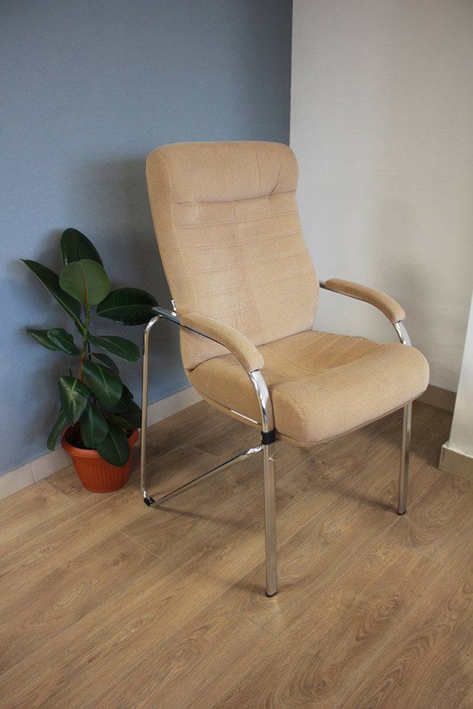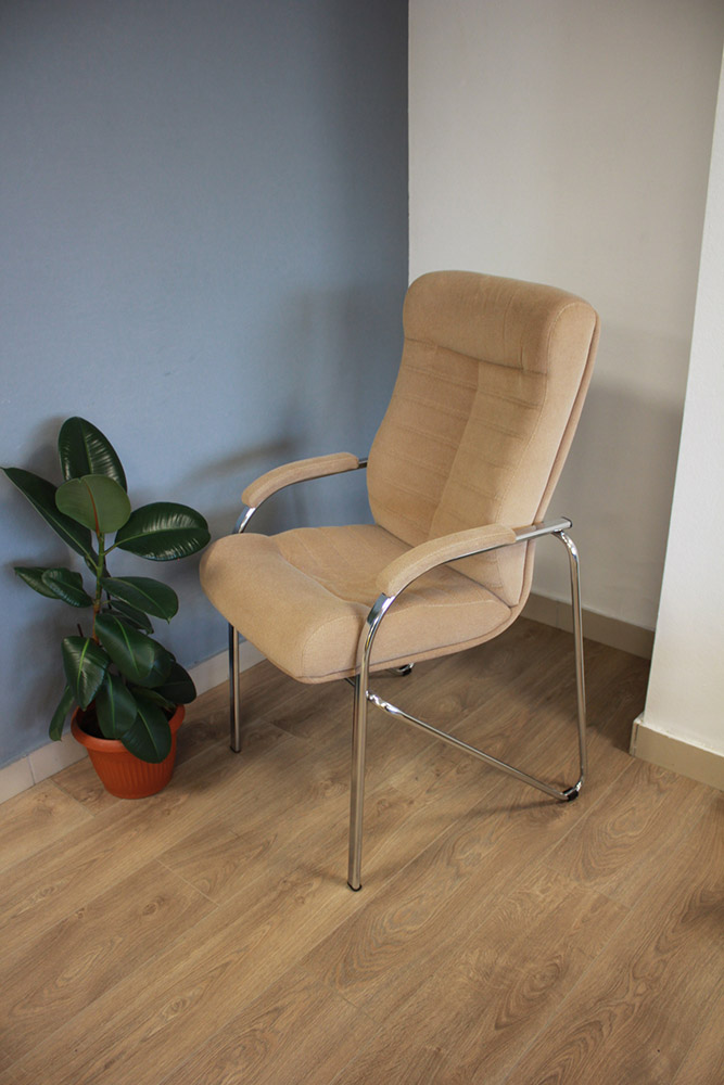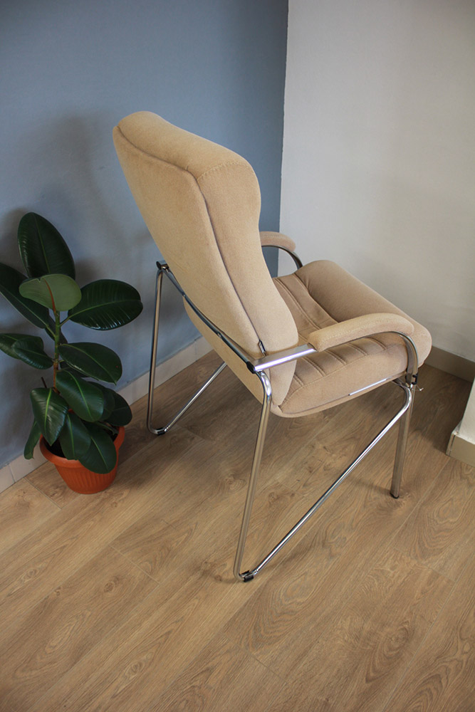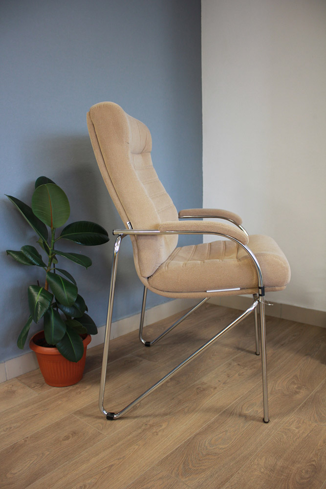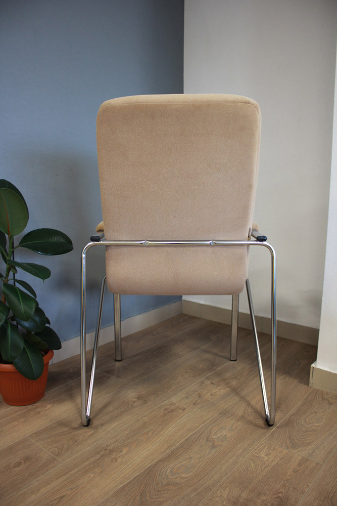 Стул может быть выполнен из ткани или искусственной кожи. Цветовая гамма также разнообразна: черный, бежевый, желтый, зеленый, коричневый, шоколадный, красный и др.