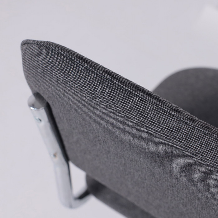 Основание кресла изготовлено из хромированного металла, без колесиков. Данная модель не имеет подлокотников.