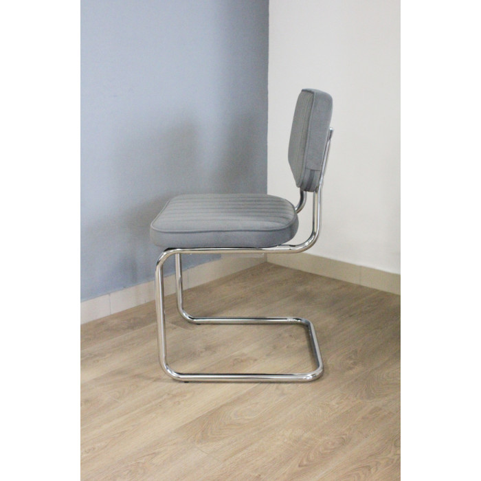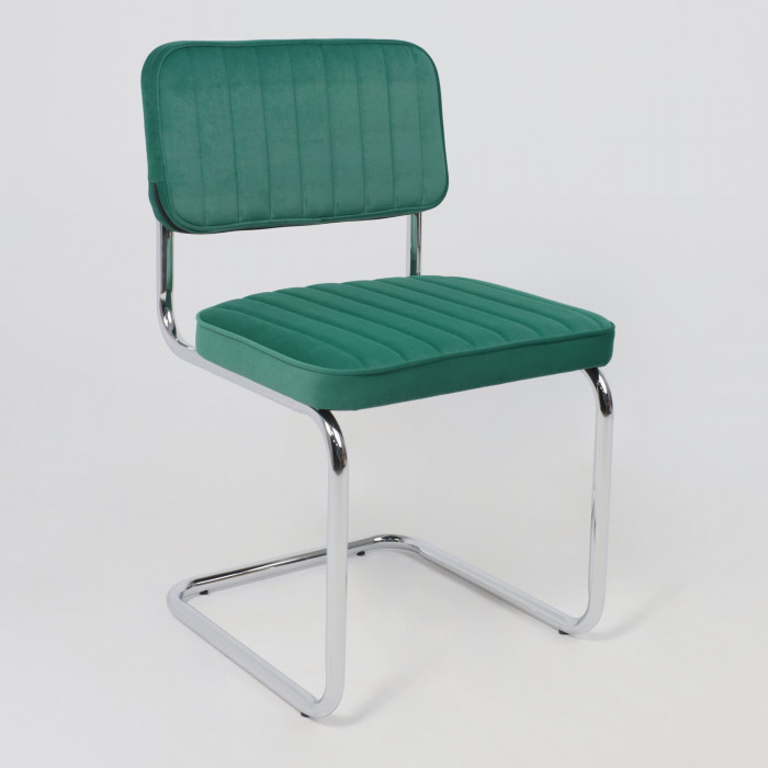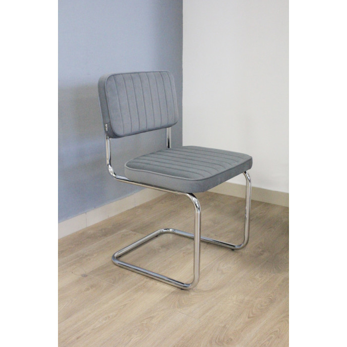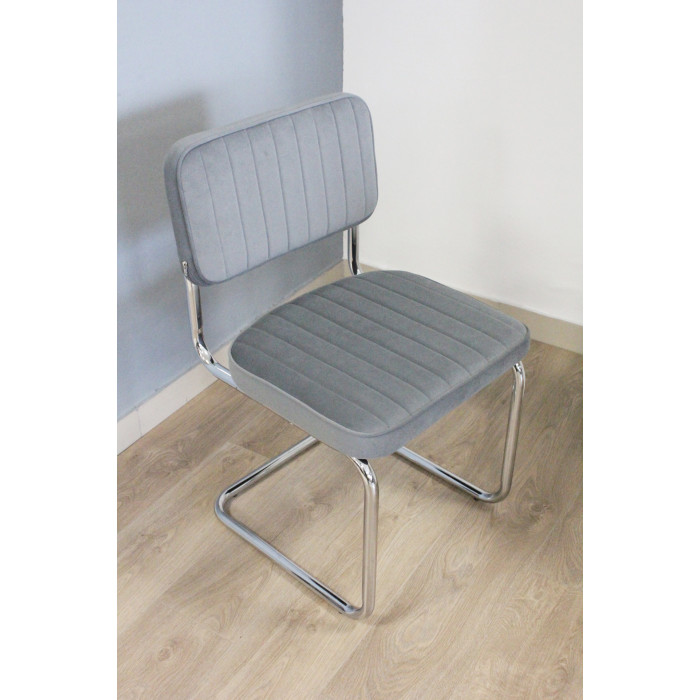 Обивка из мягкого велюра придает стулу теплоту и комфорт, создавая приятную атмосферу для гостей. Вертикальная строчка на обивке добавляет стулу стильный акцент, подчеркивая его современный дизайн. Металлическое основание обеспечивает устойчивость и надежность.