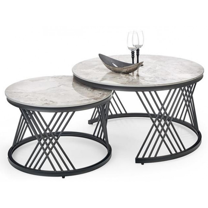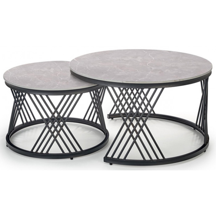Комплект HALMAR FLAMINGO (2 стола журнальных) серый мрамор/черный купить в Минске
