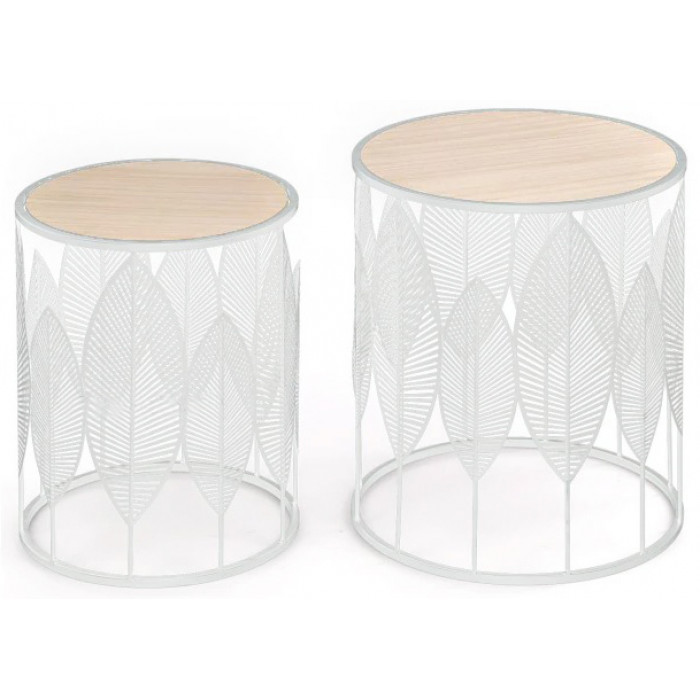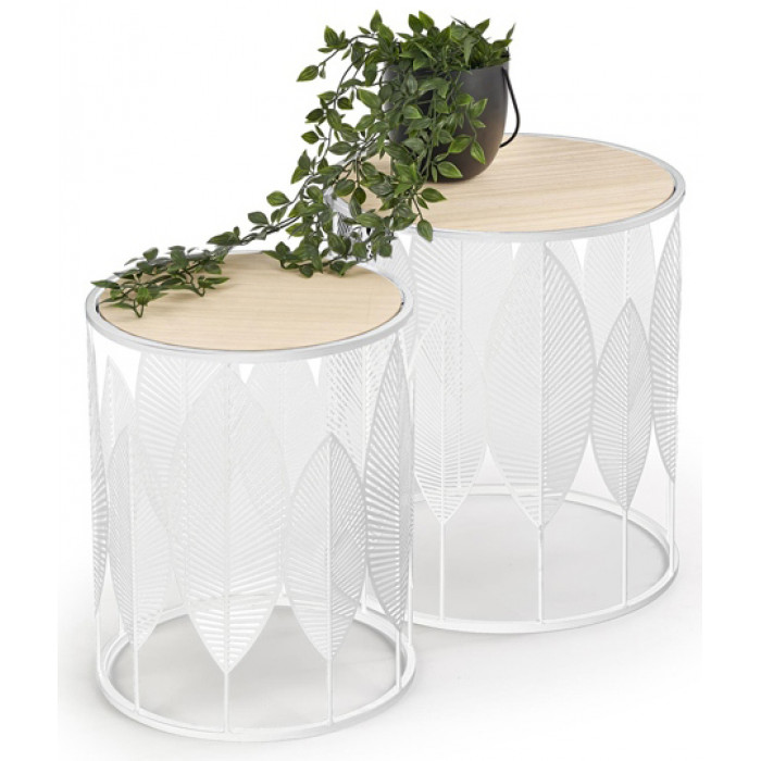 Комплект HALMAR FOLLA (2 стола журнальных) белый/натуральный купить в Минске