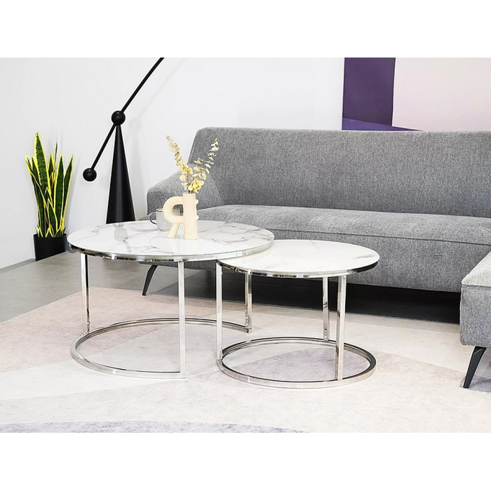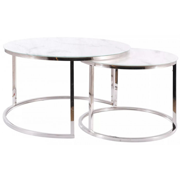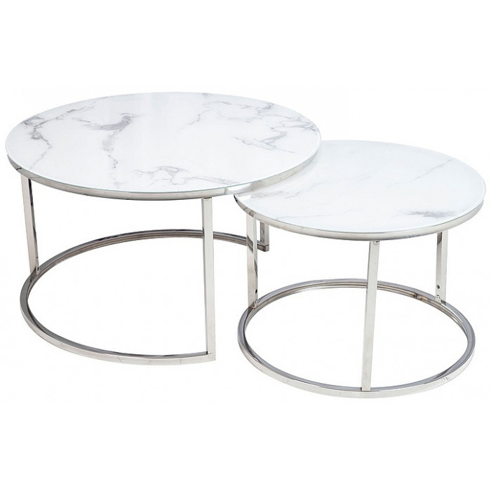 - Комплект SIGNAL ATLANTA B (2 стола журнальных) белый мрамор/хром купить в Минске
