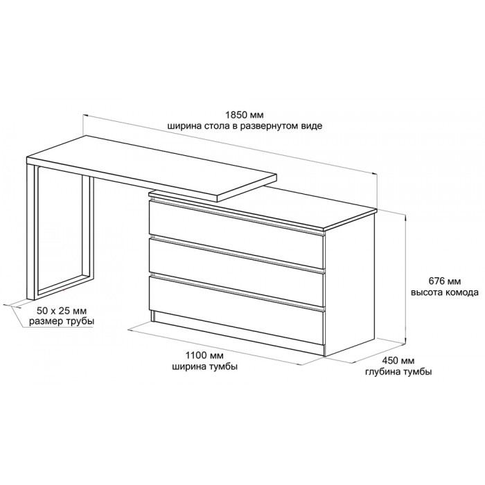 Письменный стол-комод с поворотным модулем ДОМУС СТР07 с тремя выдвижными ящиками для хранения отлично впишется в интерьер гостиной, детской или спальни.