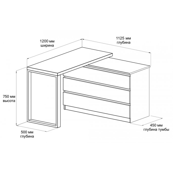 Письменный стол поворотный ДОМУС СТР07-Лофт 120х50 см белый/черный купить в Минске