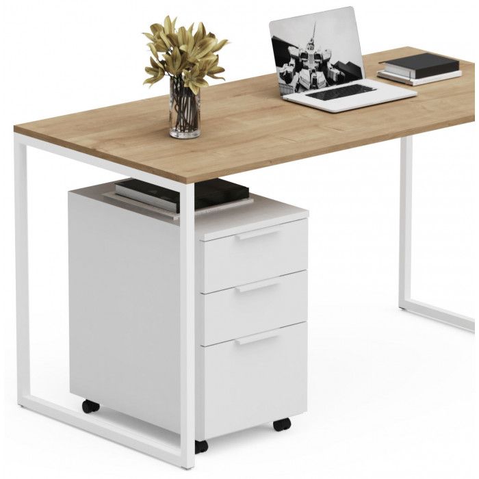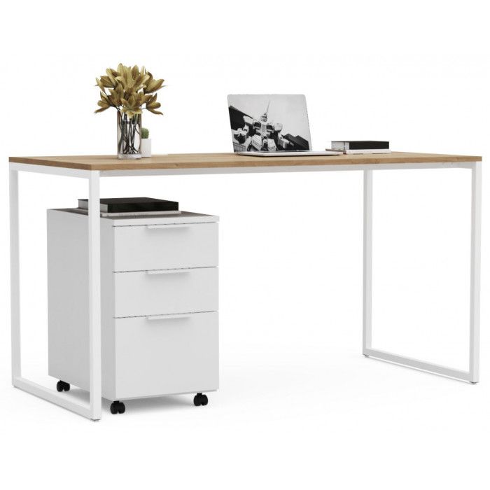Письменный стол Crafto Фауст Лофт 03 белый металл/золотистый дуб купить в Минске