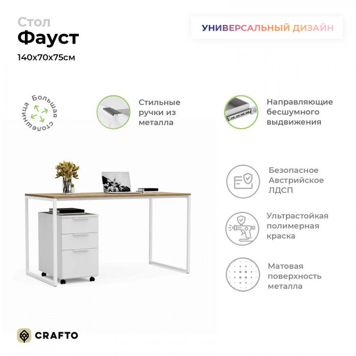 - Письменный стол Crafto Фауст Лофт 03 белый металл/золотистый дуб купить в Минске