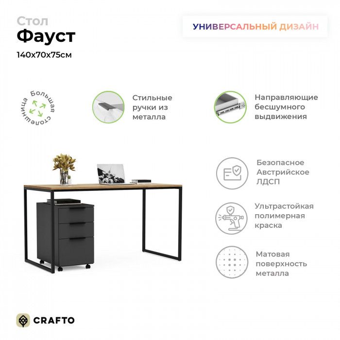 - Письменный стол Crafto Фауст Лофт 05 графит/золотистый дуб купить в Минске