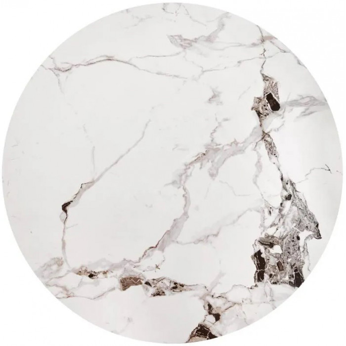 Круглая столешница диаметром 80 см сочетает в себе благородную текстуру, глянцевый блеск и исключительную практичность: устойчивость к влаге, нагреву и механическим воздействиям. Компактная высота 42 см идеально подходит для использования в зоне отдыха, создавая гармоничный баланс между мягкой мебелью и пространством. Стол излучает сдержанную роскошь, а безупречно гладкая поверхность и точные геометрические формы делают его универсальным элементом для современных интерьеров — от минимализма до ар-деко.