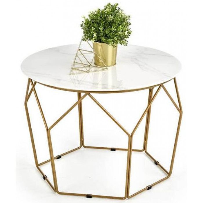 - Стол журнальный HALMAR MADISON белый мрамор/золотой купить в Минске