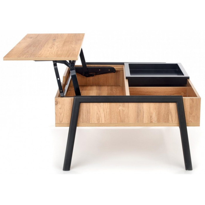 Уникальной особенностью HALMAR PODIUM является выдвижной ящик и подъемная верхняя часть. Выдвижной ящик позволят удобно разместить необходимые мелочи, а подъемная столешница открывает доступ к скрытым отделениям, позволяя организовать пространство на вашем журнальном столе максимально эффективно. Все это делает его не только стильным элементом декора, но и незаменимым помощником в хранении необходимых предметов.