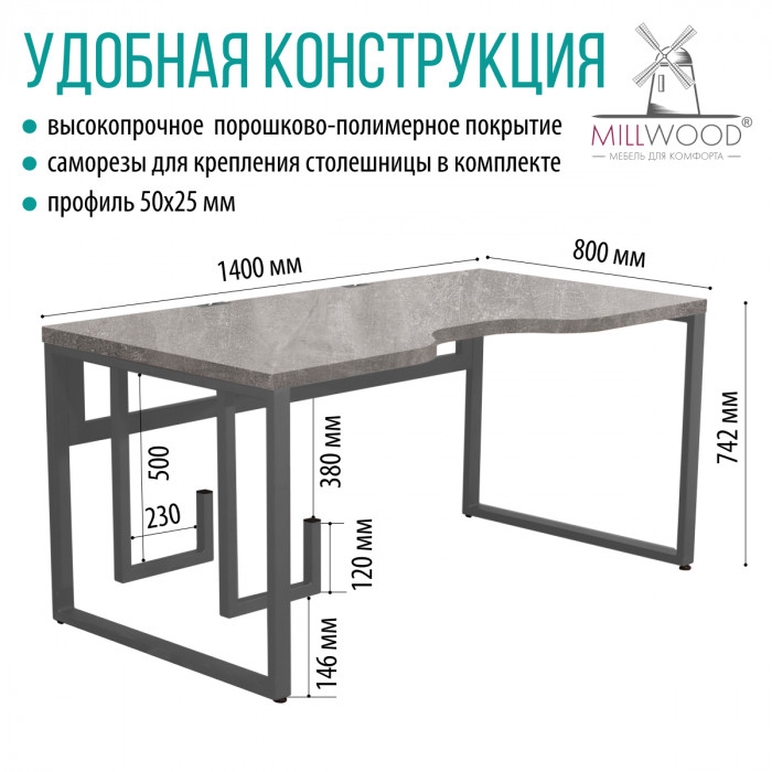 Стол компьютерный Каир 2 140*80 (каркас графит) купить в Минске