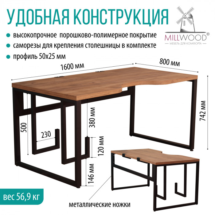 Стол компьютерный Каир 2 160*80 (каркас черный) купить в Минске
