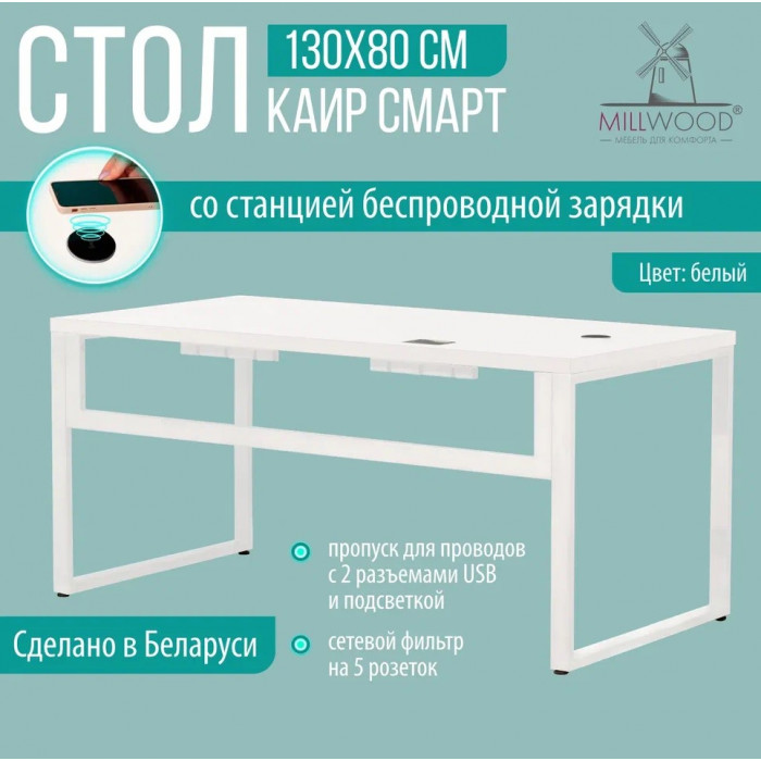 Стол письменный Каир Смарт 130*80 (каркас белый) купить в Минске