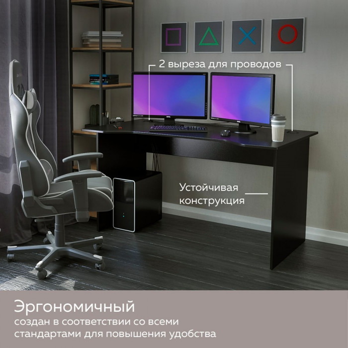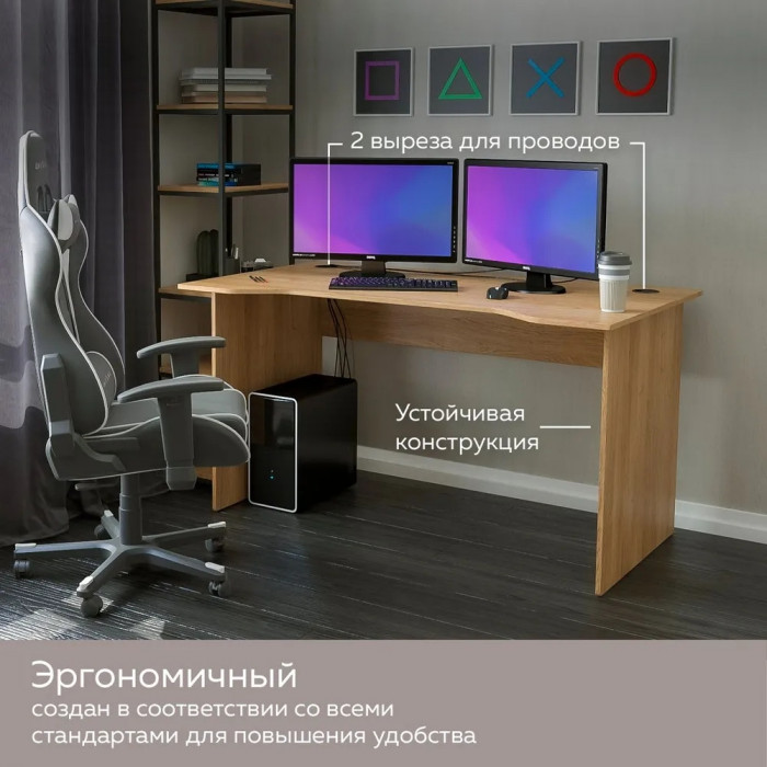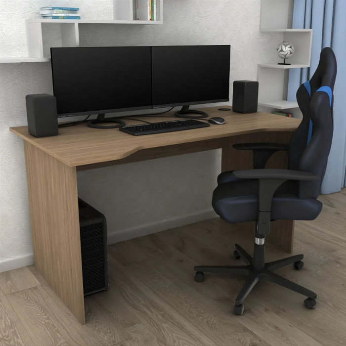 Этот стильный и функциональный компьютерный стол создан для комфортной работы и учебы. Прочная столешница из ЛДСП размером 120×60 см предоставляет достаточно пространства для размещения монитора, клавиатуры и других необходимых вещей.