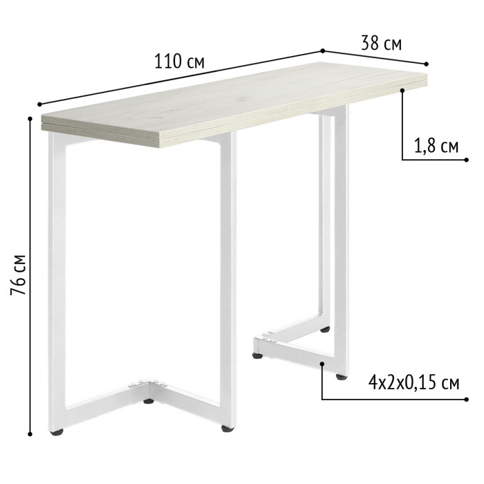 Стол-консоль Арлен 1 1100*380(760)*760 дуб белый крафт / белый купить в Минске