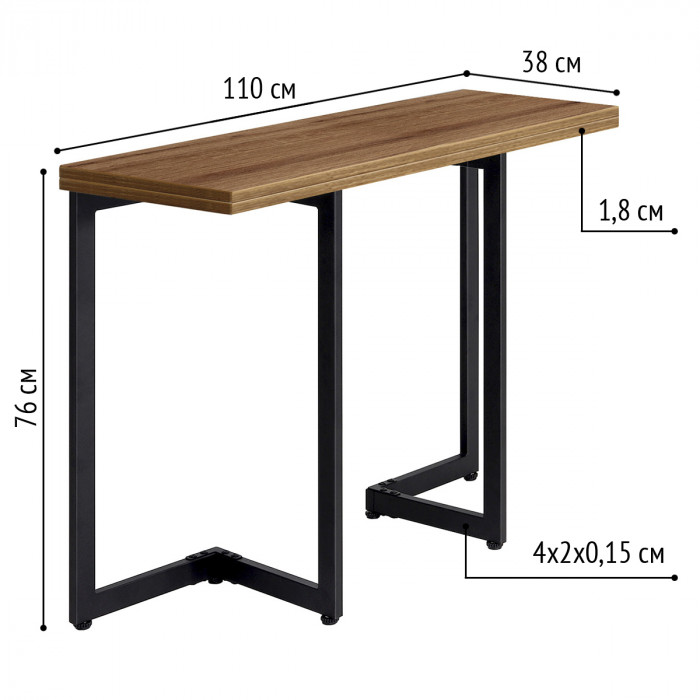 Стол-консоль Арлен 1 1100*380(760)*760 дуб табачный крафт / черный купить в Минске
