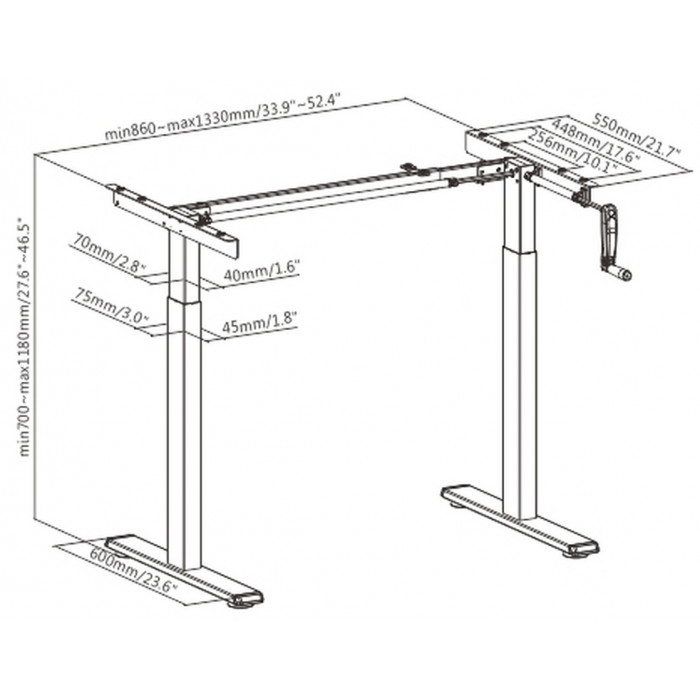 - основание - рама с ручной регулировкой высоты Manual Desk Compact FR;
