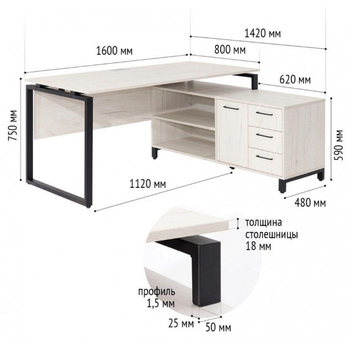Стол руководителя Олесунн 2 120*80 с тумбой правой (каркас черный) купить в Минске