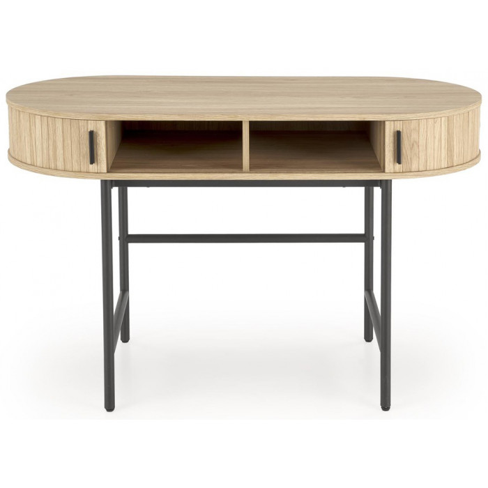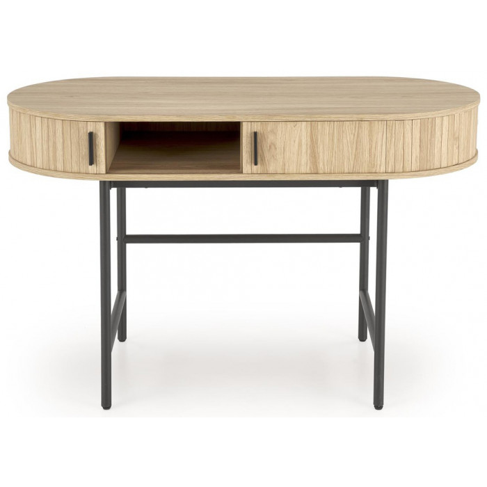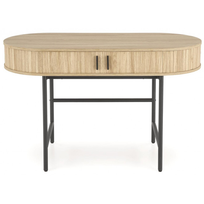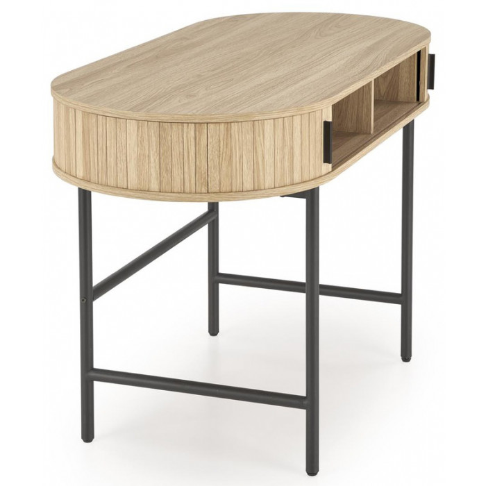 HALMAR B51 - это стильный и функциональный письменный стол, который прекрасно впишется в интерьер Вашего рабочего пространства. Сочетание натурального дерева на столешнице с черным подстольем создает элегантный и современный вид.