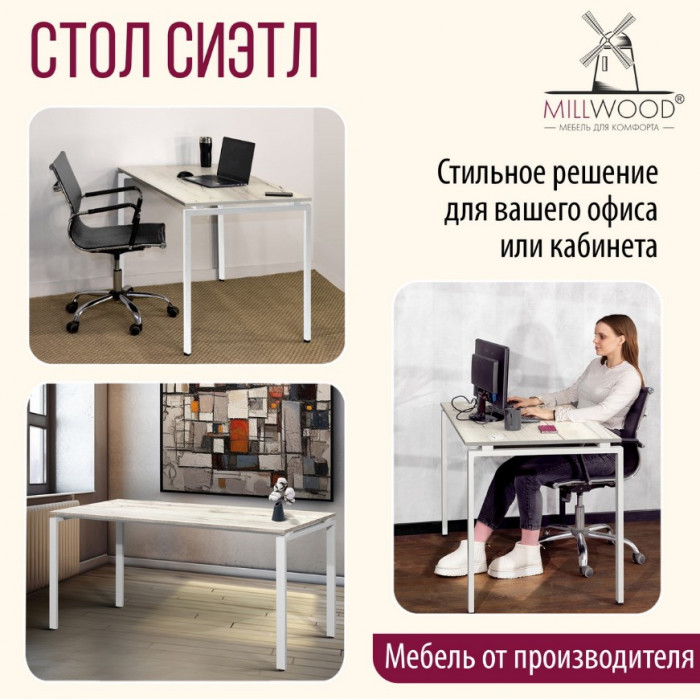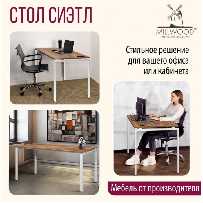 Стол СИЭТЛ – современный компьютерный / письменный стол для работы или хобби. Данная модель продумана до мелочей. Благодаря стальному каркасу внешний вид изделия приобретает законченность очертаний. Конструкция металлических опор делает стол надежным и устойчивым.