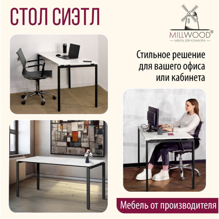 Стол СИЭТЛ – современный компьютерный / письменный стол для работы или хобби. Данная модель продумана до мелочей. Благодаря стальному каркасу внешний вид изделия приобретает законченность очертаний. Конструкция металлических опор делает стол надежным и устойчивым.