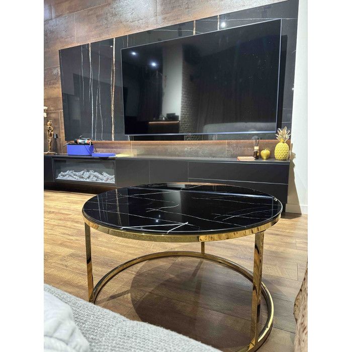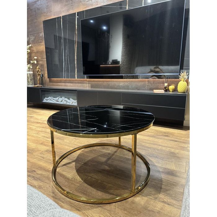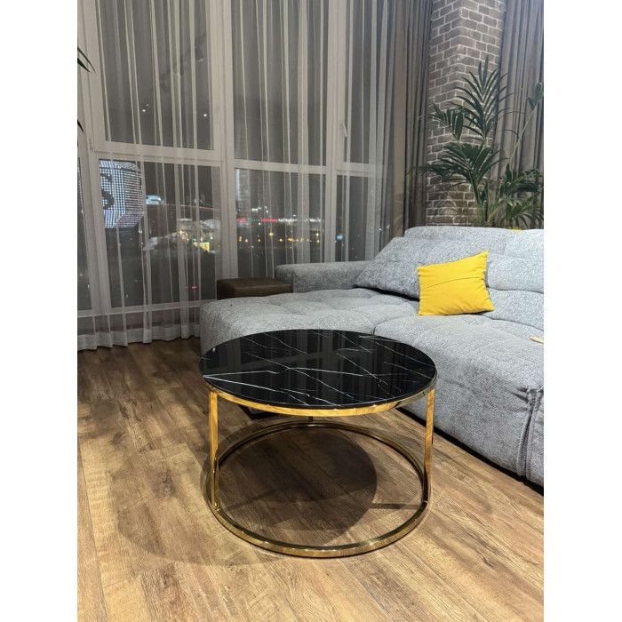 Стол журнальный SIGNAL SABINE (Сабин) d80 эффект черного мрамора/золотой купить в Минске