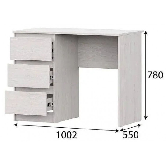 Лаконичный дизайн и светлый оттенок «ясень» создают ощущение легкости и простора, делая стол универсальным элементом мебели. Три удобных выдвижных ящика под столешницей помогут хранить документы, канцелярию и другие необходимые мелочи, сохраняя порядок и аккуратность на рабочем месте. Стол станет отличным выбором для тех, кто ценит комфорт, порядок и стиль.