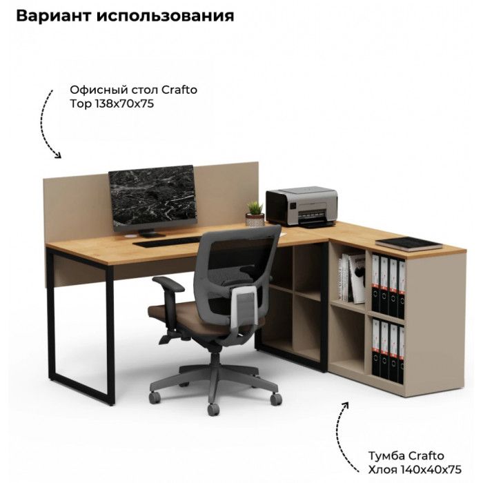 Письменный стол Crafto Тор Хлоя с тумбой 04 дуб золотистый / черный / латте купить в Минске