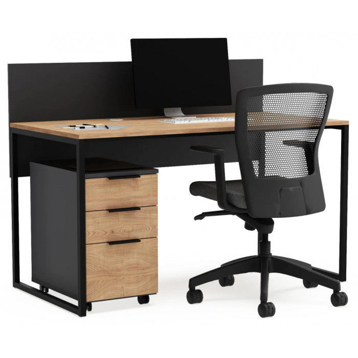 Письменный стол Crafto Тор с экраном и тумбой 04 дуб золотистый / черный купить в Минске