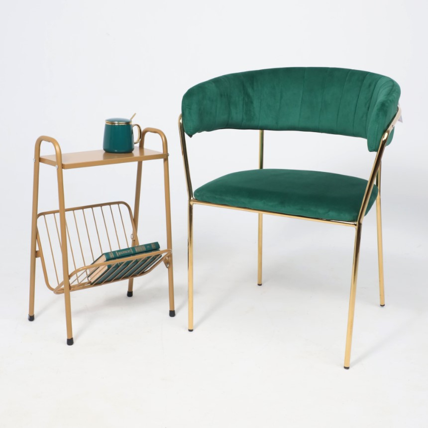 Столешница и основание выполнены в золотом цвете. Они сделаны из металла, что добавляет столу прочности и стабильности.