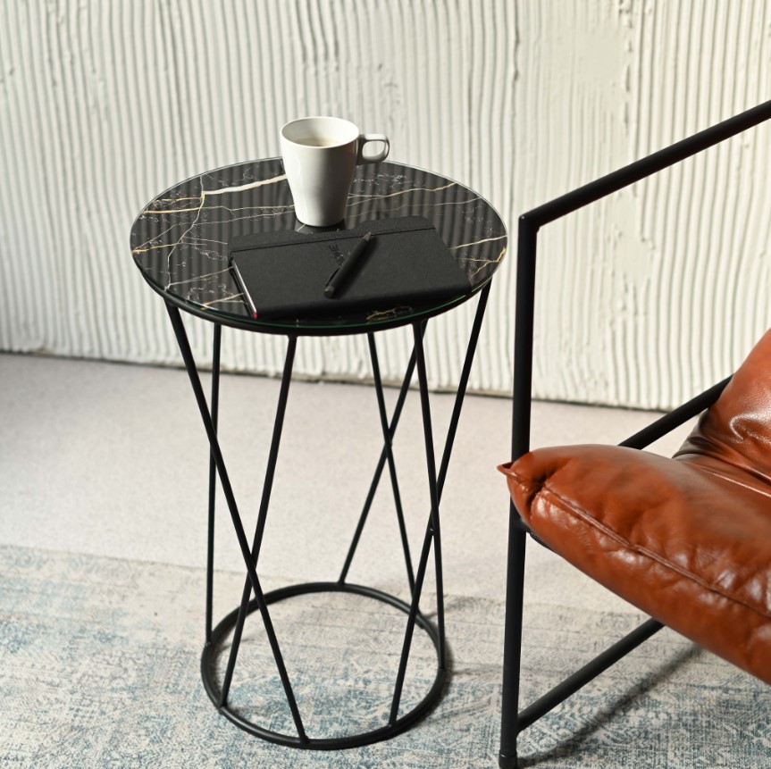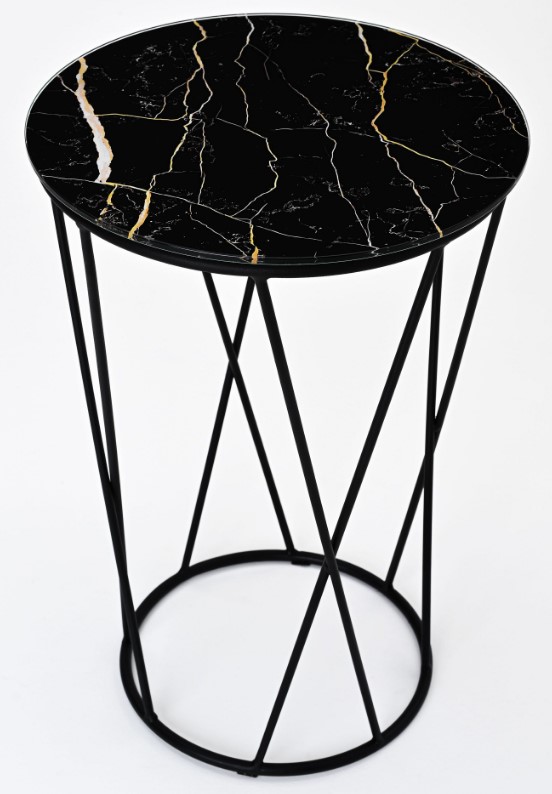 Стол журнальный АЛЛЮР черный мрамор/черный, d400*600 купить в Минске