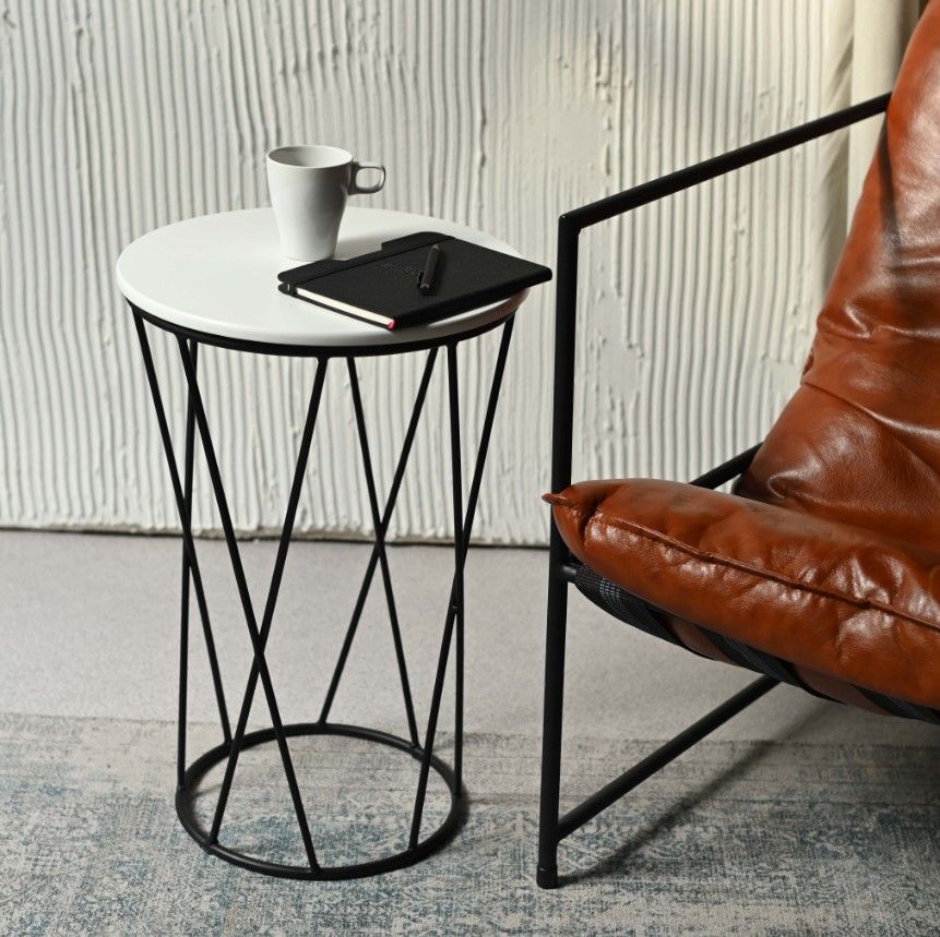 Стол журнальный АЛЛЮР МДФ белый/черный, d400*600 купить в Минске