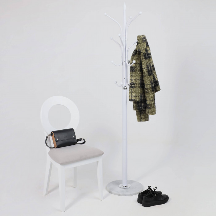 Благодаря компактным размерам и продуманной форме, вешалка органично впишется даже в небольшое пространство, обеспечивая удобное размещение пальто, курток и головных уборов. Прочное металлическое покрытие устойчиво к износу и надолго сохранит безупречный внешний вид.
