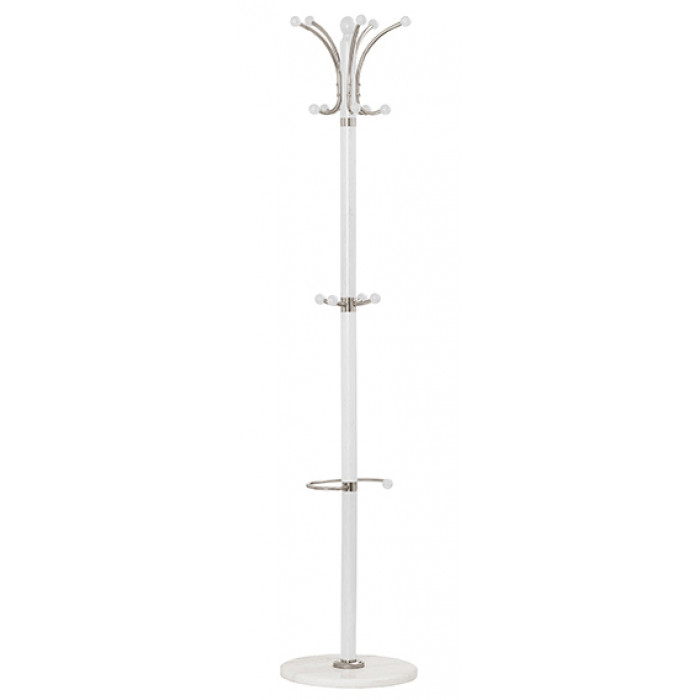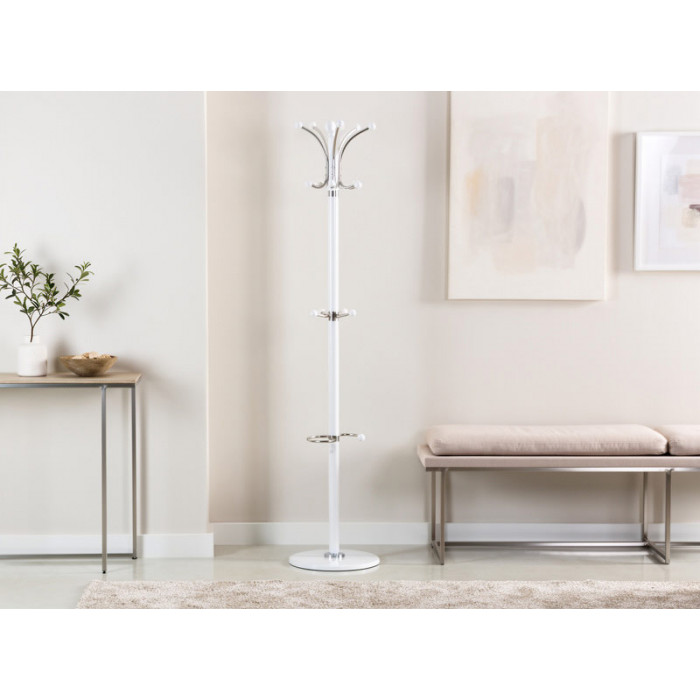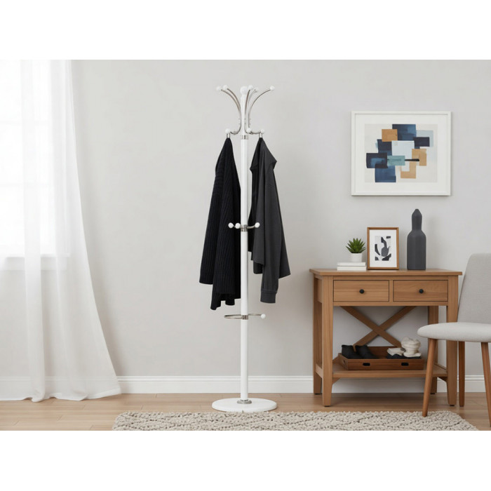 Изысканная напольная вешалка HALMAR W13 в белоснежном исполнении – это воплощение премиальной эстетики и скандинавской элегантности. Высокая стойка с натуральным деревянным стволом, основанием из натурального камня и декоративными хромированными крючками создает роскошное решение для прихожей, которое обеспечивает удобное размещение верхней одежды, сумок и аксессуаров, привнося в пространство чистоту белоснежной палитры, природную фактуру натуральных материалов и блеск хромированных деталей.