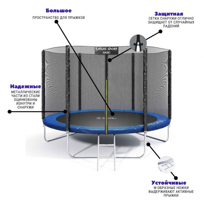 Батут Atlas Sport 404 см (13ft) Basic с внешней сеткой синий купить в Минске