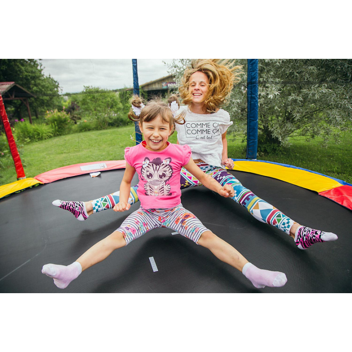 Качество материалов, использованных в конструкции батута Sundays Acrobat 312 см, являются гарантией его длительного использования. Стальной каркас и шестьдесят пружин имеют специальное покрытие, защищающее металл от ржавчины. Износостойкое полипропиленовое прыжковое полотно устойчиво к ультрафиолету. Такой состав материалов позволяет батуту продолжительное время находиться под открытым небом без потери своих свойств и качества. Комплектация включает в себя защитную сетку и приставную лестницу. Эти аксессуары будут особенно полезными, если на батуте будут играть детки. С помощью лестницы забраться самостоятельно внутрь будет под силу даже самым маленьким прыгунам. А сетка защитит ваших детей от возможной падений за пределы полотна.