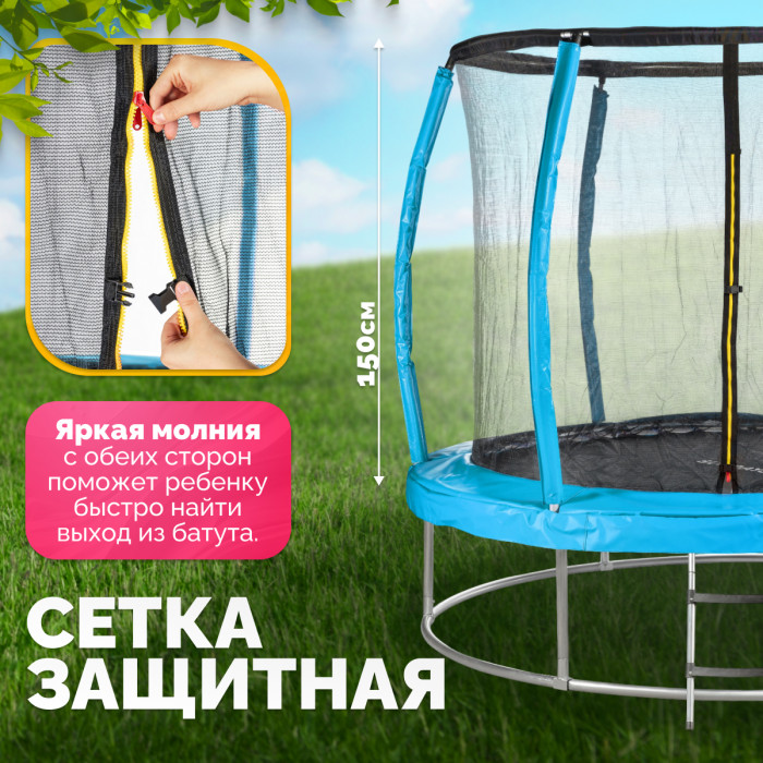 Батут Favorite Premium 8FT — отличное решение для активных игр и тренировок на свежем воздухе. Компактные размеры и яркий голубой цвет делают его привлекательным элементом для двора или дачи. В комплекте с батутом идет защитная сетка и лестница, что гарантирует безопасность и удобство в использовании. Сетка помогает предотвратить возможные травмы, а лестница облегчает подъем и спуск, что особенно важно для детей.