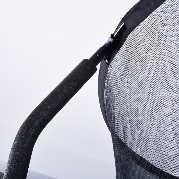 Батут для улицы с защитной сеткой создает безопасные условия для активного отдыха. Конструкция выдерживает максимальную нагрузку до 150 кг. Сочетание синего и черного цветов сохраняет внешний вид при использовании на открытом воздухе.