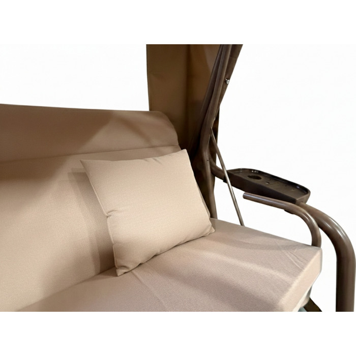 Садовые качели Sundays Garden из коллекции Инфинити – это настоящее приглашение к отдыху на свежем воздухе. Мягкое трехместное сиденье с толщиной настила 80 мм, выполненное из дышащего хлопка и полиэстера с наполнителем из пенополиуретана, дарит ощущение комфорта, сравнимое с любимым диваном.