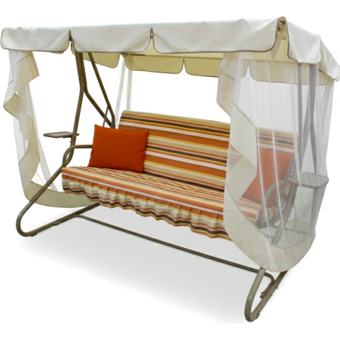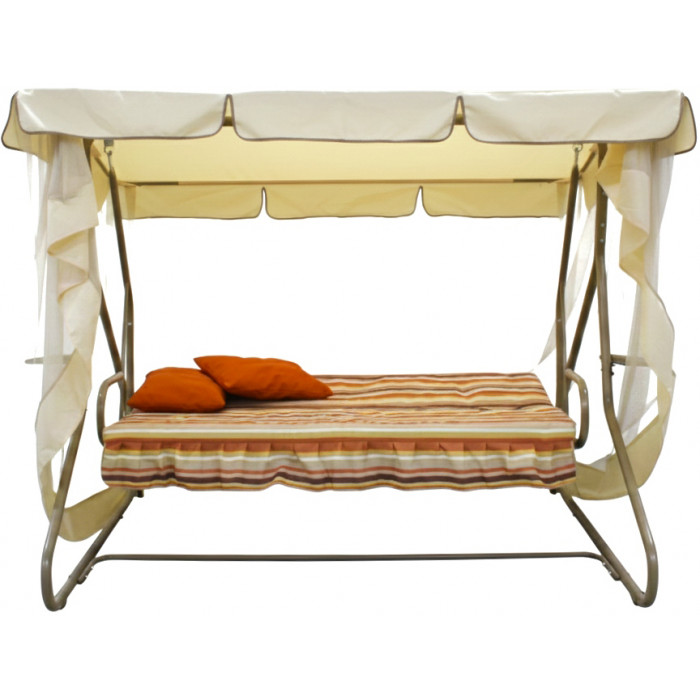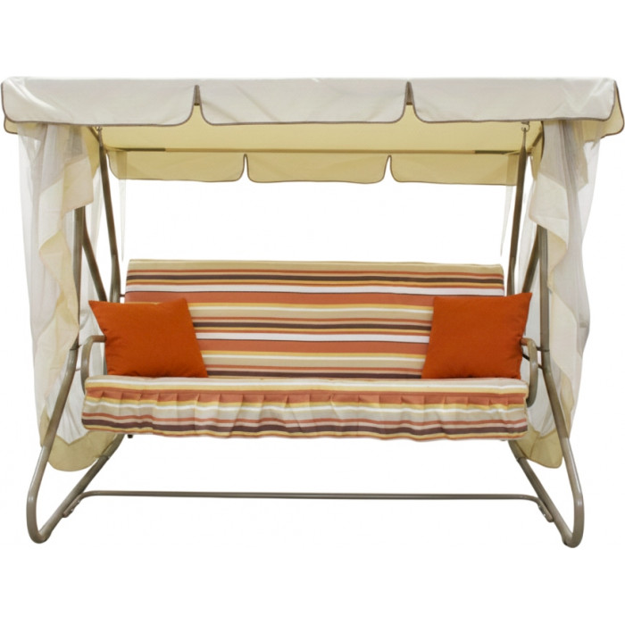 Садовые качели Sundays Garden из коллекции Люкс в свежей расцветке c1760 (бежевый с оранжевой полоской) мгновенно притягивают взгляд, наполняя пространство вокруг теплом и позитивной энергией.