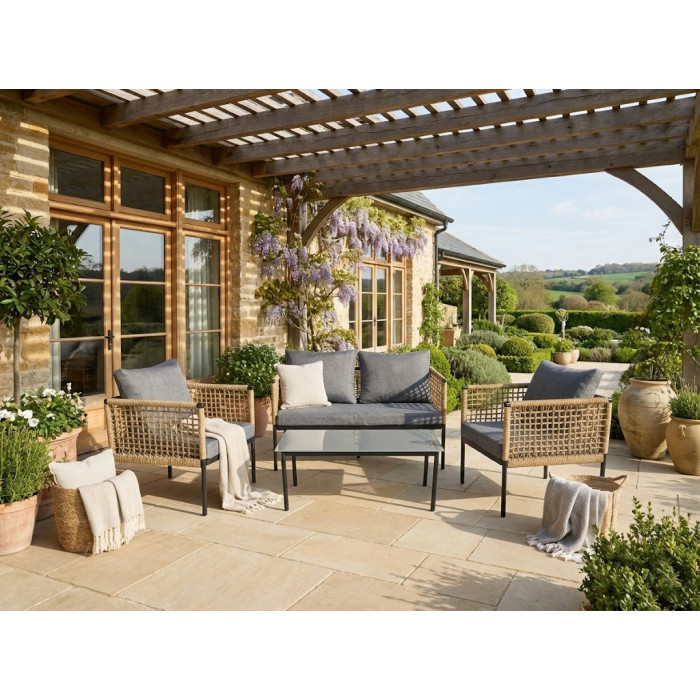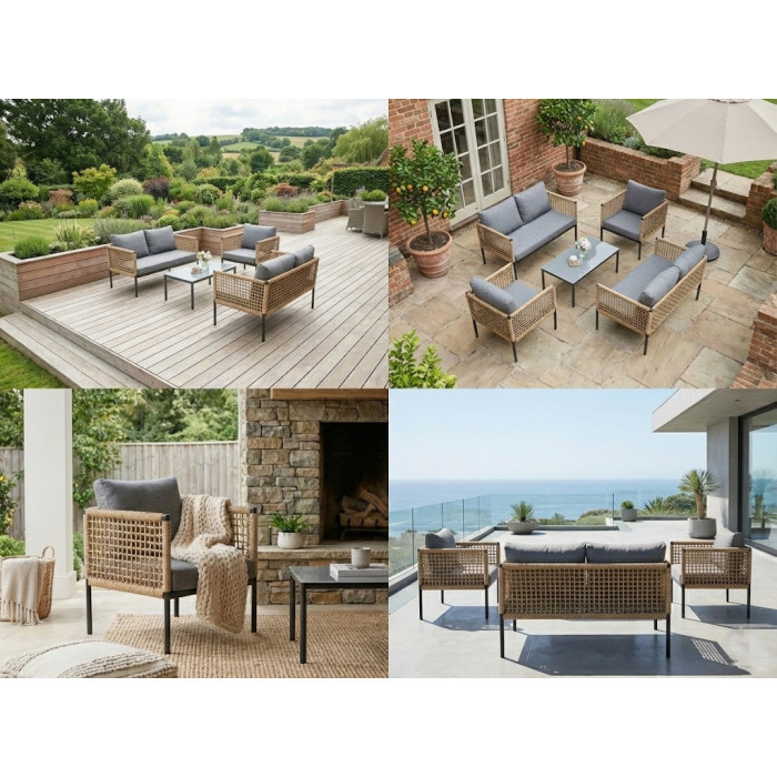 Комплект садовой мебели Sundays Salemi SFS315 воплощает средиземноморский шарм и безупречный вкус, предлагая гармоничное пространство для отдыха на веранде или в загородном доме.