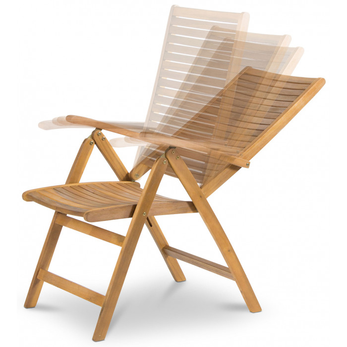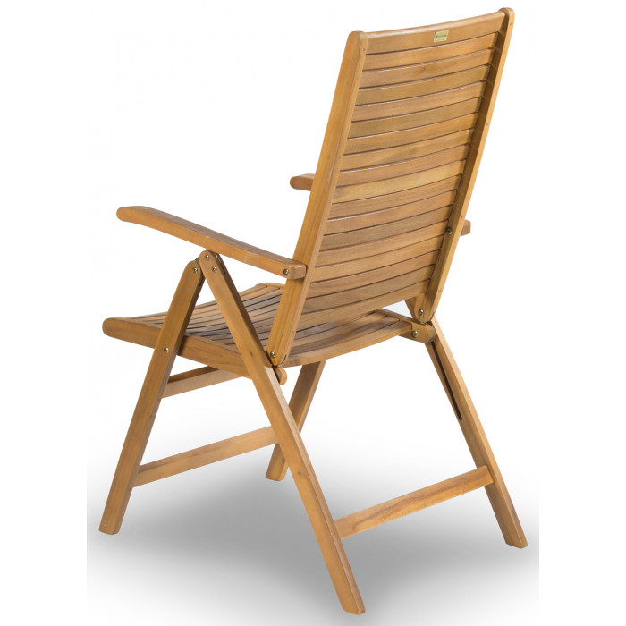 Эргономичная форма и регулируемые подлокотники с пятью положениями наклона позволяют легко найти идеальное положение для отдыха. Простота настройки — достаточно переставить подлокотник — делает кресло невероятно удобным в использовании. Долговечность конструкции обеспечена прочными латунными шарнирами и системой защиты от случайного складывания, а специальное лаковое покрытие надежно защищает поверхность от внешних воздействий.