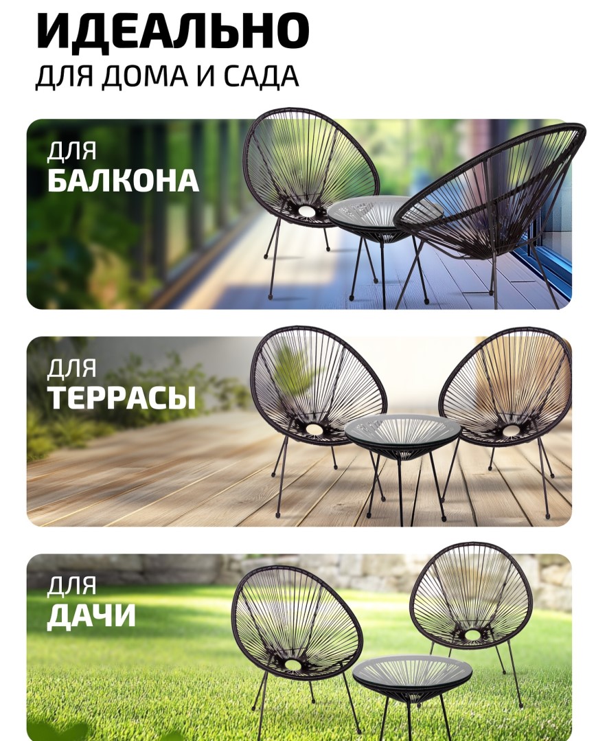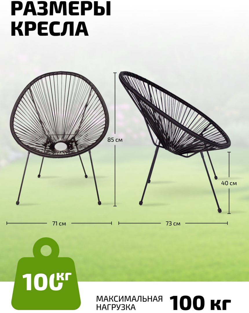 Садовое кресло Frias с цельным прутковым каркасом (без пустот) выдерживает нагрузку до 120 кг и не боится влаги – идеально для бассейна, улицы или балкона. К креслу можно докупить стол и стулья Frias, собрав стильный комплект.