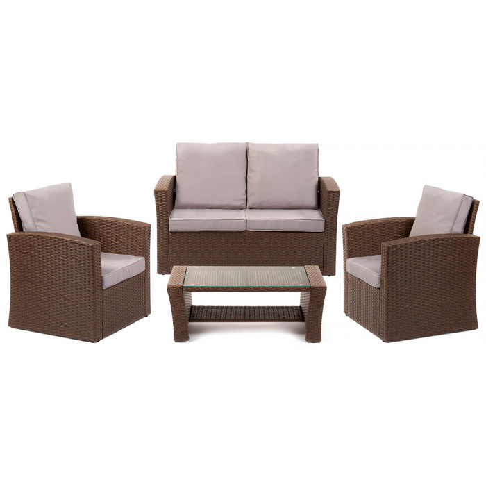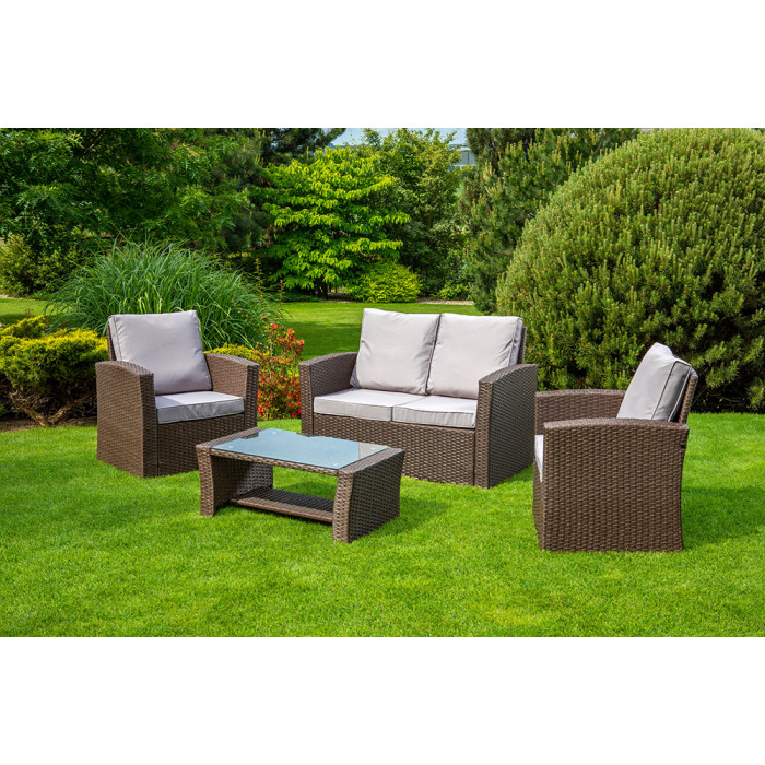Комплект садовой мебели MIA FDZN 6065-PR состоит из стола, дивана и двух кресел.