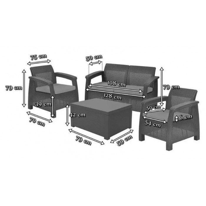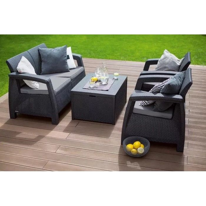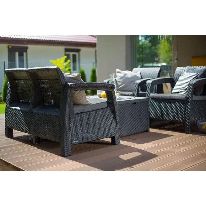 Набор уличной мебели Corfu II Box Set (диван двухместный, стол-сундук, 2 кресла) графит купить в Минске
