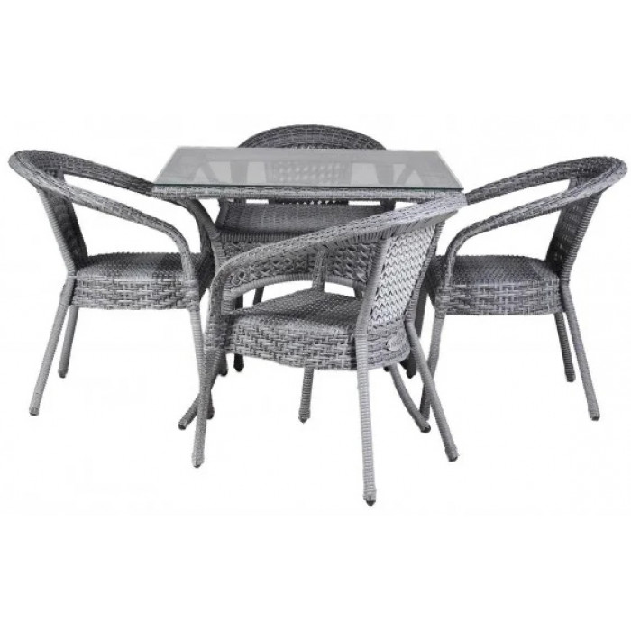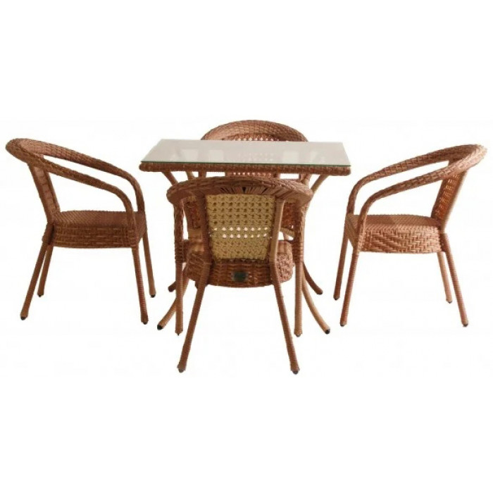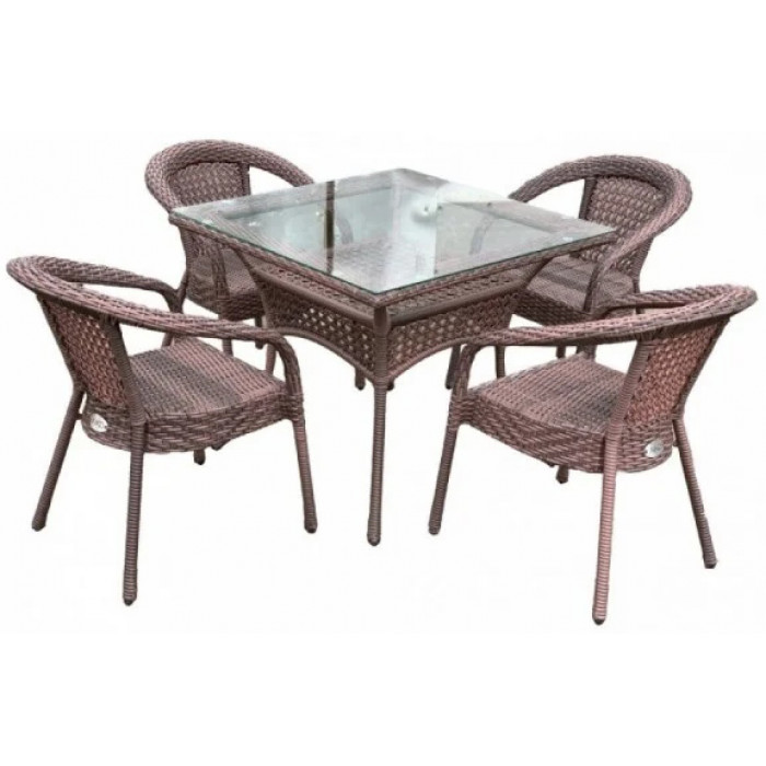 Комплект плетеной мебели DECO 4 с квадратным столом из искусственного ротанга на 4 персоны. Не боится влаги, прямых солнечных лучей, мороза. Не требует особого ухода. Легко моется. Рекомендованная температура эксплуатации -16/+50.