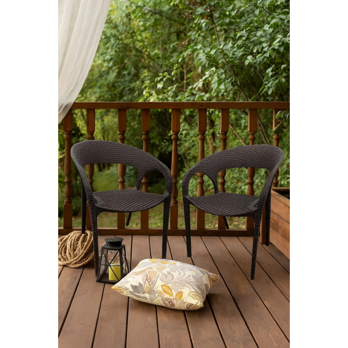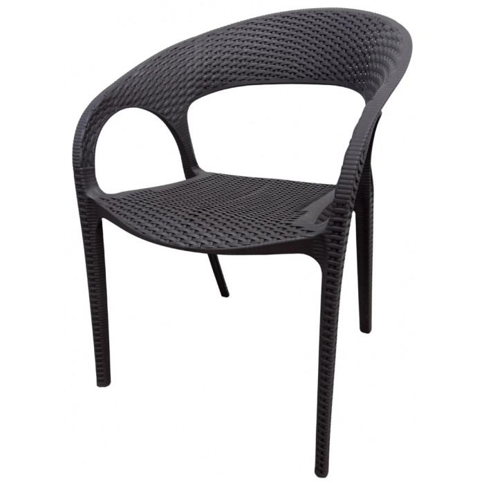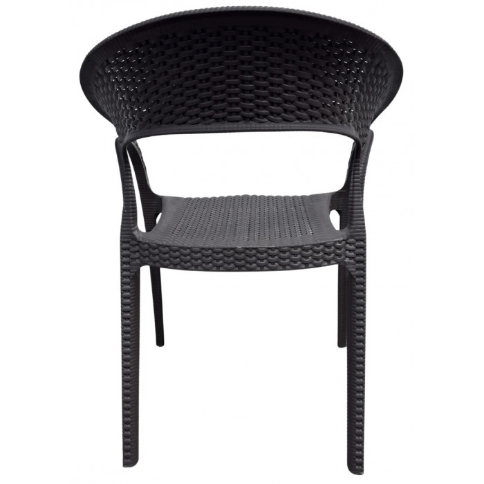 Кресло выполнено из высококачественного полипропилена. Лёгкий и прочный уличный стул имитирует красивое плетение из искусственного ротанга или же лозы.