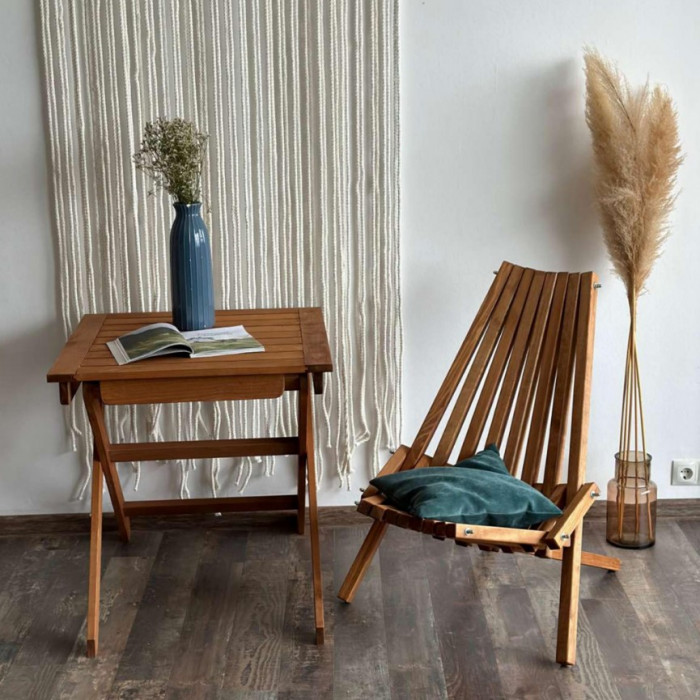 Изготовлен из массива сосны. Цвет стола - дуб, что придает ему естественный и стильный вид.
