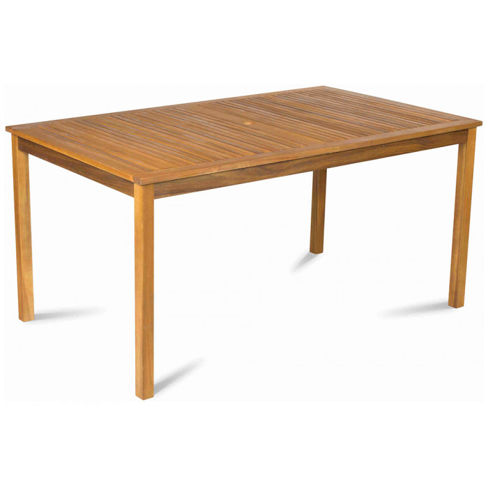 Изготовленный из прочной тропической древесины акации, он обладает естественной устойчивостью к влаге и перепадам температур, что делает его идеальным для использования как на открытом воздухе, так и в помещении. В центре стола предусмотрено стандартное отверстие для зонта, позволяющее создать комфортную тень в солнечные дни. Благодаря оптимальному размеру стол гармонично сочетается с четырьмя креслами или парой кресел со скамьей, делая его универсальным решением для любых ситуаций.